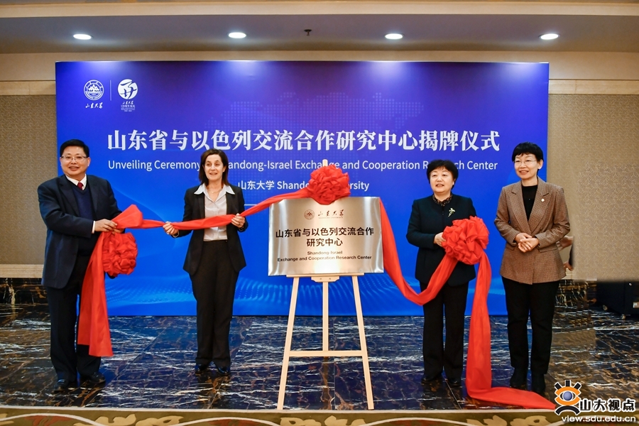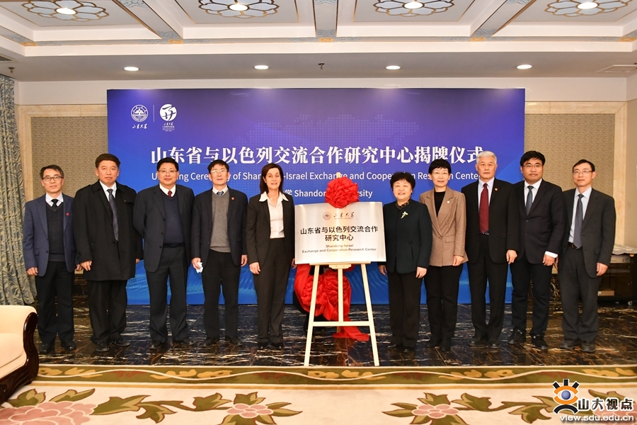 [本站讯]12月21日,以色列驻华大使潘绮瑞率团访问山东大学。校长樊丽明会见潘绮瑞大使一行,山东省人民政府外事办公室副主任孙业宝、山东省教育厅副厅长孙晓筠等一同到访,并共同为“山东省与以色列交流合作研究中心”揭牌。山东大学副校长韩圣浩主持揭牌仪式并出席相关活动。