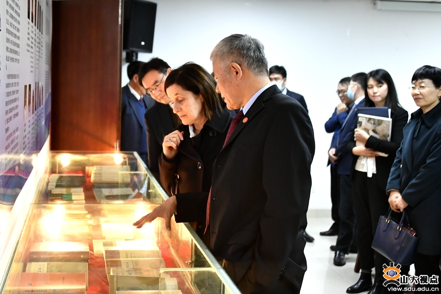 会见后,潘绮瑞大使一行参观了教育部人文社会科学重点研究基地——山东大学犹太教与跨宗教研究中心、山东大学-特拉维夫大学犹太与以色列联合研究所和山东大学博物馆。