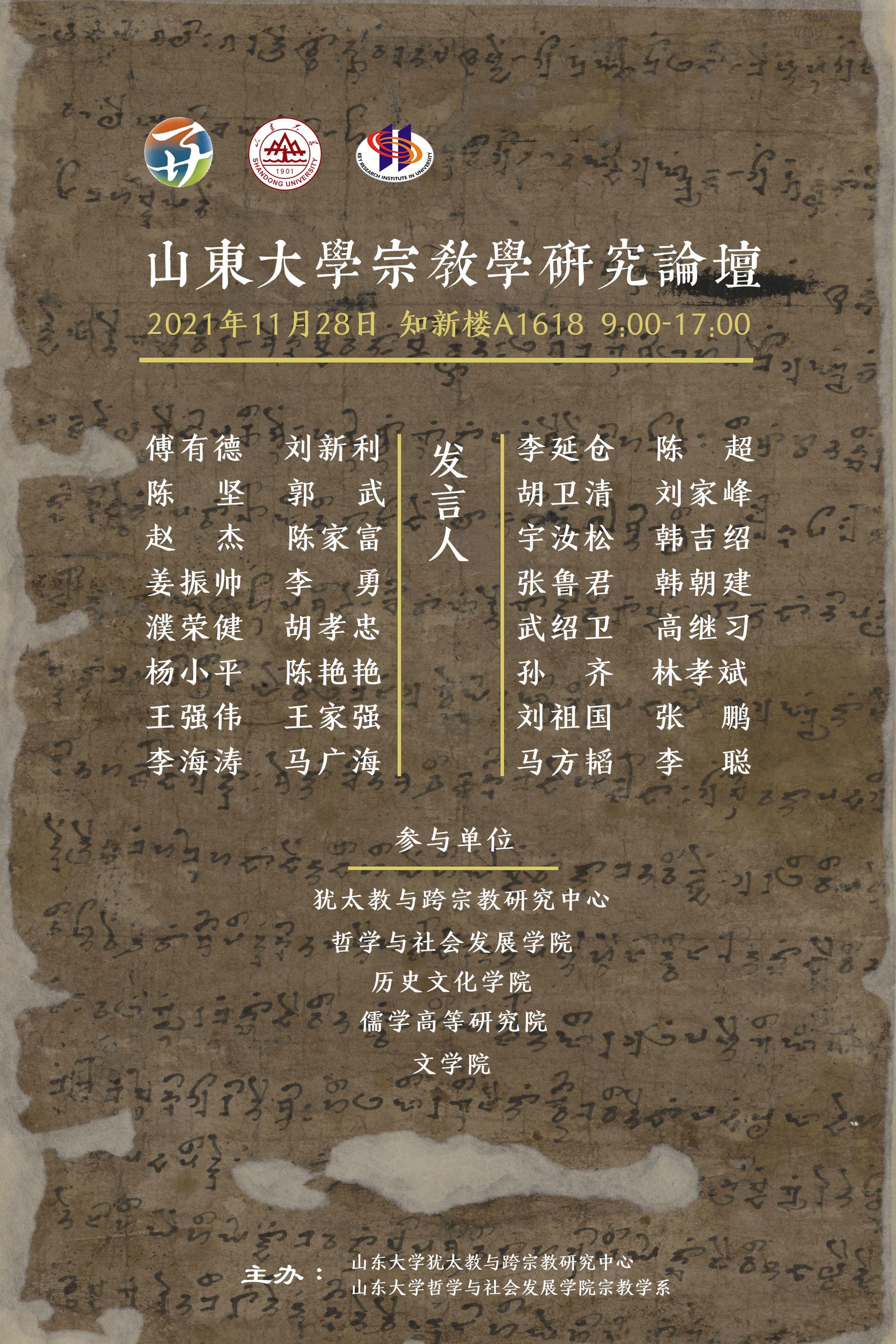 11月28日,由教育部人文社会科学重点研究基地山东大学犹太教与跨宗教研究中心、哲学与社会发展学院宗教学系主办,校内多家相关单位参与的“首届山东大学宗教学研究论坛”在山东大学中心校区顺利召开。