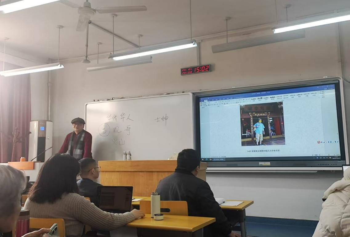 2024年12月25日,著名学者、华侨大学宗教文化研究所原所长黄海德教授应邀为宗教学系2023级本科生举行了题为“金石证史:海外华文宗教碑铭的历史价值与现代意义”的讲座。本次讲座由山东大学哲学与社会发展学院宗教学系、山东大学犹太教与跨宗教研究中心主办,饶宗颐宗教与中国文化研究所承办,属于山东大学宗教学专业本科课程教学改革之“道教概论”系列讲座之一。