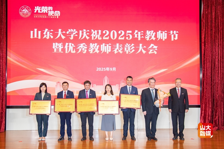9月9日下午,在第41个教师节即将到来之际,“山东大学庆祝2025年教师节暨优秀教师表彰大会”在中心校区举行。以傅有德教授为负责人的哲学与社会发展学院犹太教与跨宗教研究教师团队获评“第三批山东大学黄大年式教师团队”,犹太教与跨宗教研究中心副主任陈坚教授作为团队代表上台领奖,山东大学党委书记任友群为各团队代表颁奖。