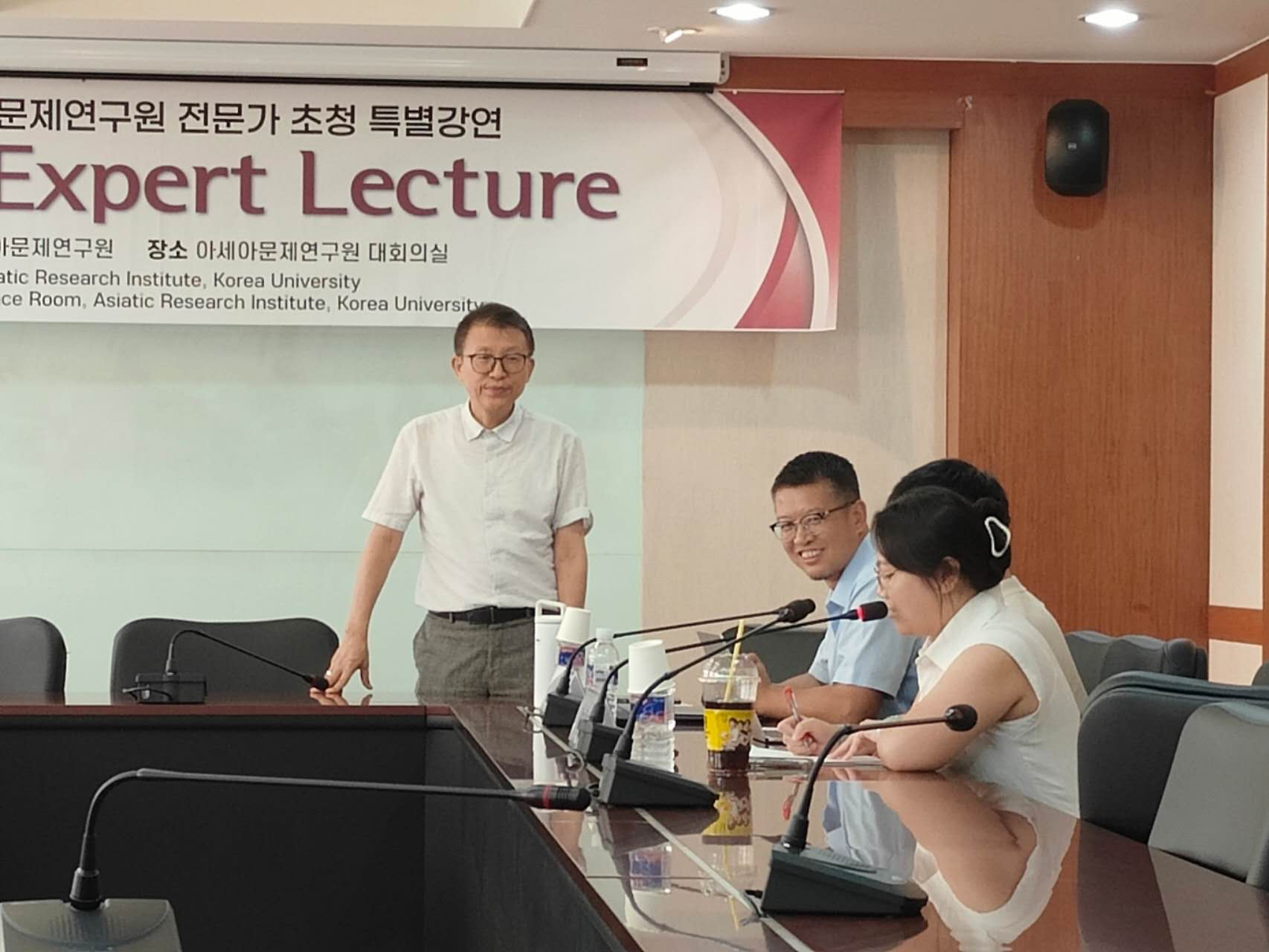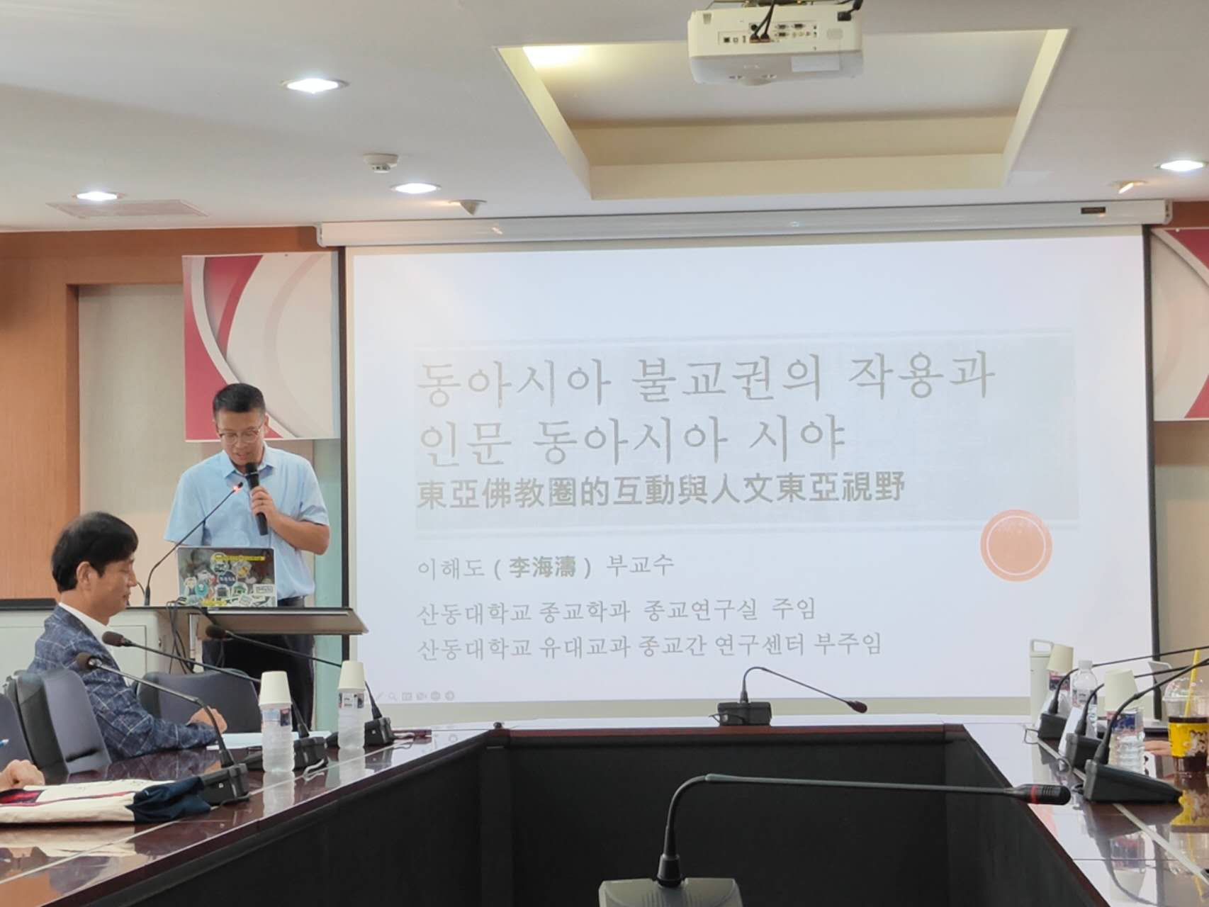 2025年7-8月,山东大学犹太教与跨宗教研究中心副主任李海涛副教授在韩国高丽大学亚洲问题研究院进行两个月的访问研究。8月19日下午,受邀在韩国高丽大学亚洲问题研究院进行学术报告,报告主题为《东亚佛教圈的互动与人文东亚视野》。此次学术报告由高丽大学亚洲问题研究院副院长孙基荣教授主持,高丽大学亚洲问题研究院院长李镇汉教授致辞。