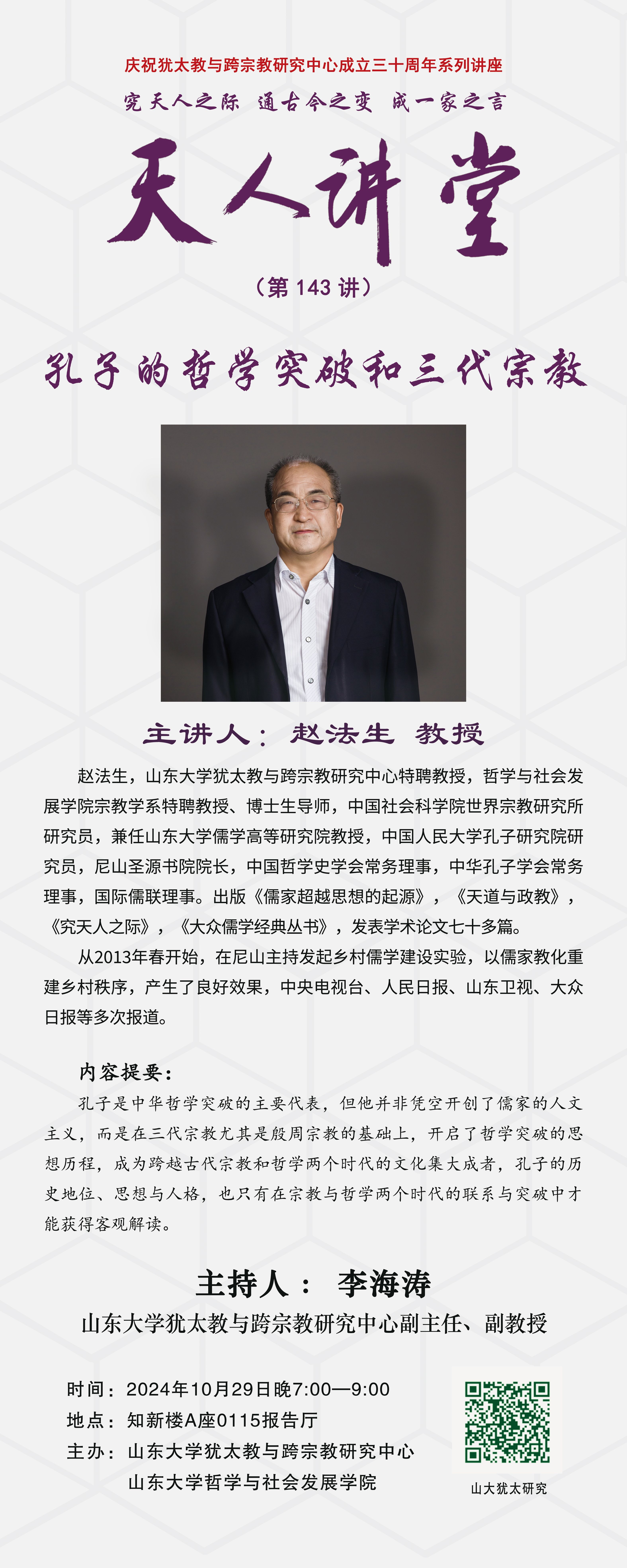 上一条:【天人讲堂(第144讲)】黎志添:道教经典文献的研究方法再思:版本、考据、流传