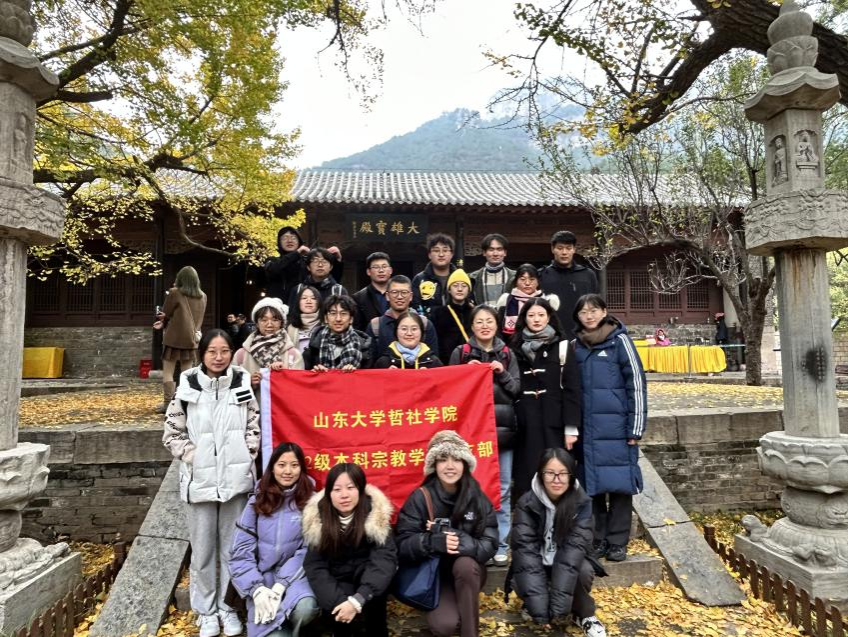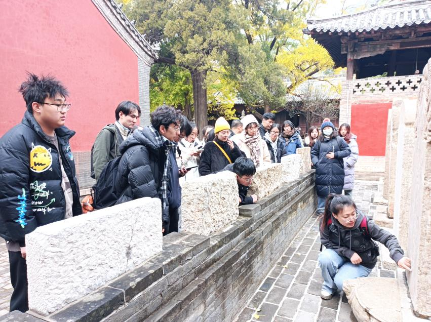2023年11月11日,山东大学哲学与社会发展学院宗教学系面向本科生开展了“灵岩寺之行”专业教育创新实践活动。宗教学教研室主任李海涛副教授组织宗教学专业2021、2022级本科生及部分研究生近二十名学生前往济南灵岩寺,并邀请宗教学专业2020届博士毕业生、山东社会科学院当代宗教研究所助理研究员马丛丛介绍灵岩寺历史、解读碑刻。